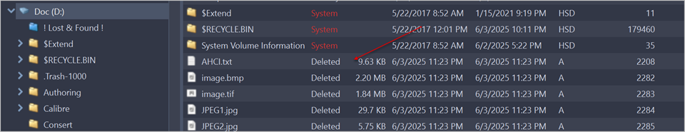 Files or folders in gray indicate deleted files that have not been sanitized. These files are recoverable.