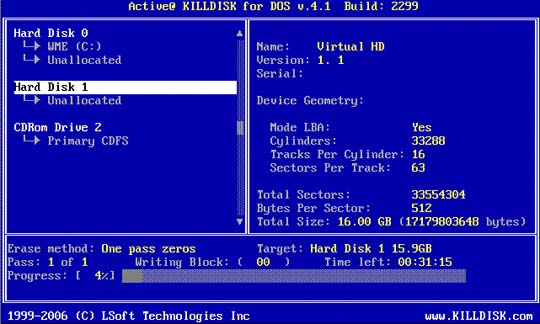 Before < Running Active@ KillDisk for DOS: Erasing the Data >
