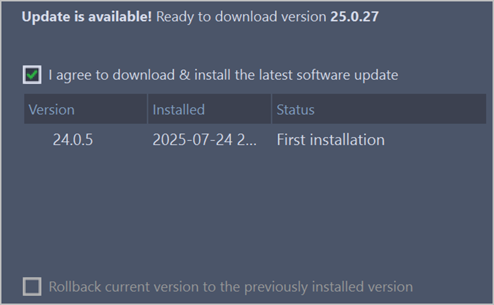 If a new version or update is detected it can be downloaded and installed on the next wizard steps.