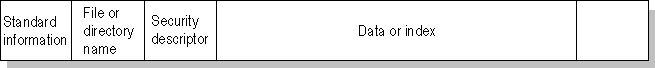 The master file table allocates a certain amount of space for each file record. The attributes of a file are written to the allocated space in the MFT. Small files and directories (typically 1500 bytes or smaller), such as the file illustrated in next figure, can entirely be contained within the master file table record.