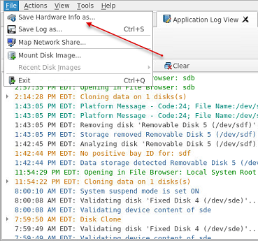 To create a hardware diagnostic file, click Save Hardware Info as from the File menu .